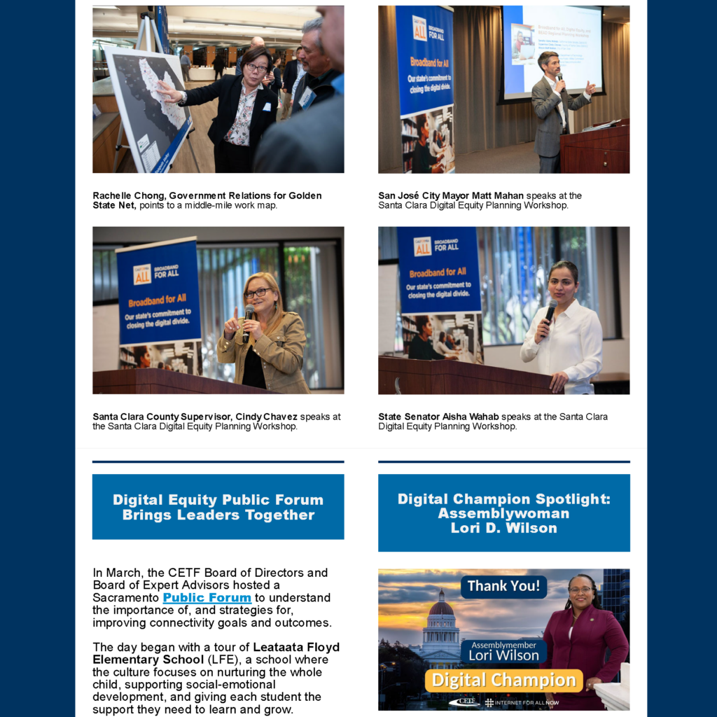 Dear Digital Equity Champion: It has been a busy first quarter for 2023 as the California Emerging Technology Fund (CETF) has been working diligently to achieve Digital Equity in California by convening Digital Equity leaders throughout the state to coordinate our shared work. The dedication […]
